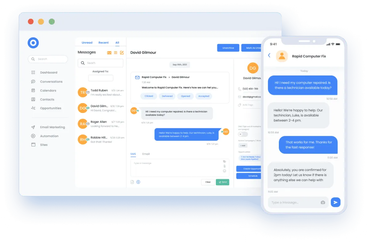 Our chat widget captures leads 24/7 right on your website. Connect with more potential customers.